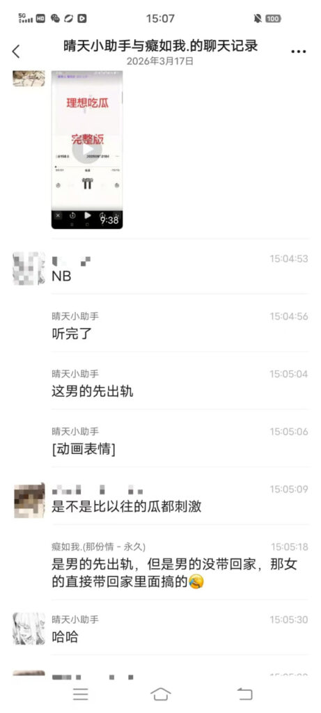 该文章由91吃瓜发布,转载请注明来源并附上原文链接: 抖音热瓜四川内江蔡大侠杜晓燕双向出轨9分29秒录音完整版
