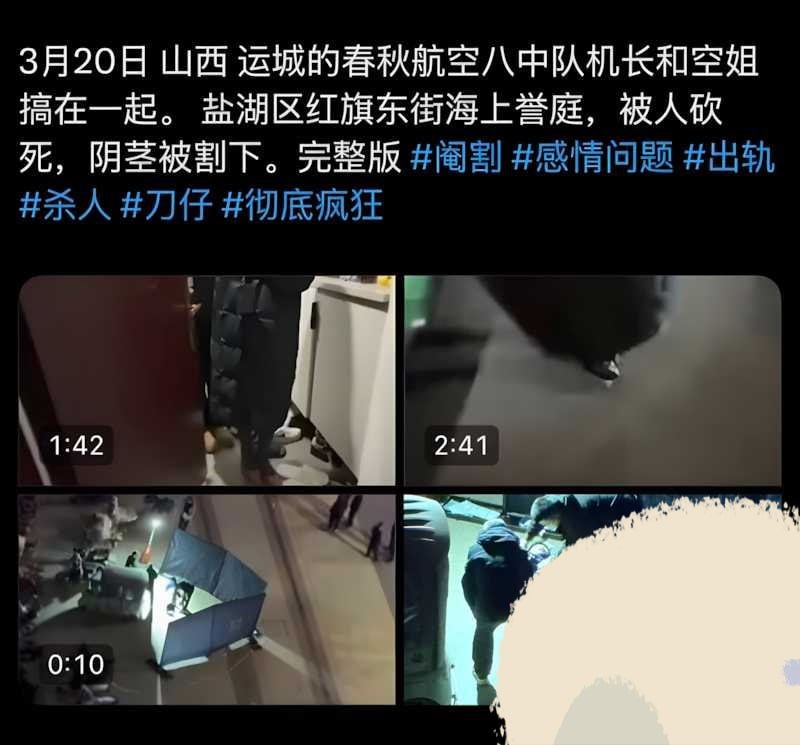 该文章由91吃瓜发布,转载请注明来源并附上原文链接: 山西运城春秋航空阉割门副驾李俊杰出轨空姐被割下体