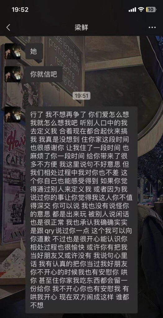 该文章由91吃瓜发布,转载请注明来源并附上原文链接: 实锤江西梁鲜梁白眼好闺蜜背刺借钱借车还要借男友