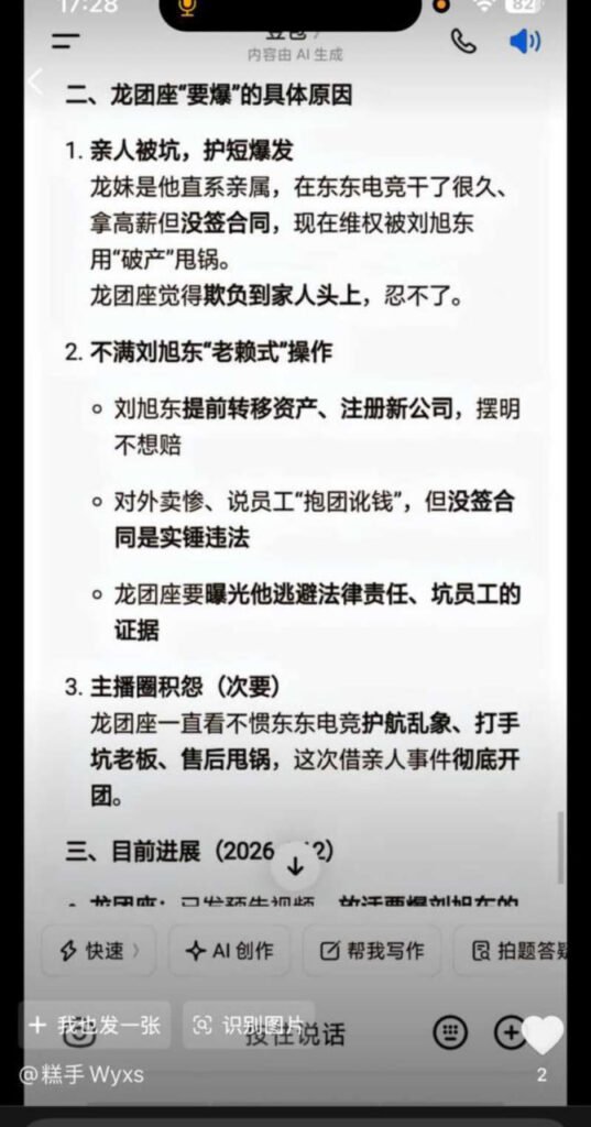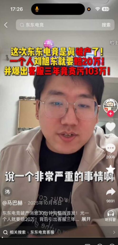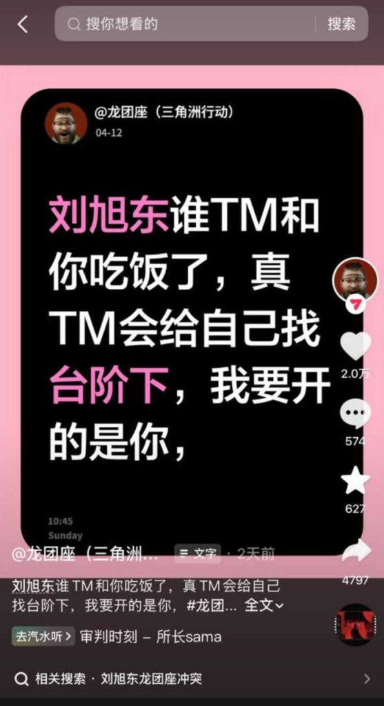 该文章由91吃瓜发布,转载请注明来源并附上原文链接: 东东电竞董事长刘旭东被堵门百万粉丝网红龙团座线下真实