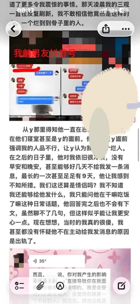 江西景德镇男子张天翼于2025年11月同时交往原女友和抖音上的女生y。11月21日他向原女友表白,翌日又通过小号搭讪y,悄然开始数月秘密约会。真相曝光后,y发现自己被利用,和原女友对质并公开了聊天记录。原来他在两人面前互相贬低:对y谩骂原女友品质低下,对原女友却称y为“小三”,还联合密友z将原女友素颜照和私聊记录发给y,试图彻底抹黑她。愤怒的y不仅白送礼物,支付了游戏皮肤和耳机费用,且他口头承诺还款始终未兑现,最终选择将他拉黑删除好友。