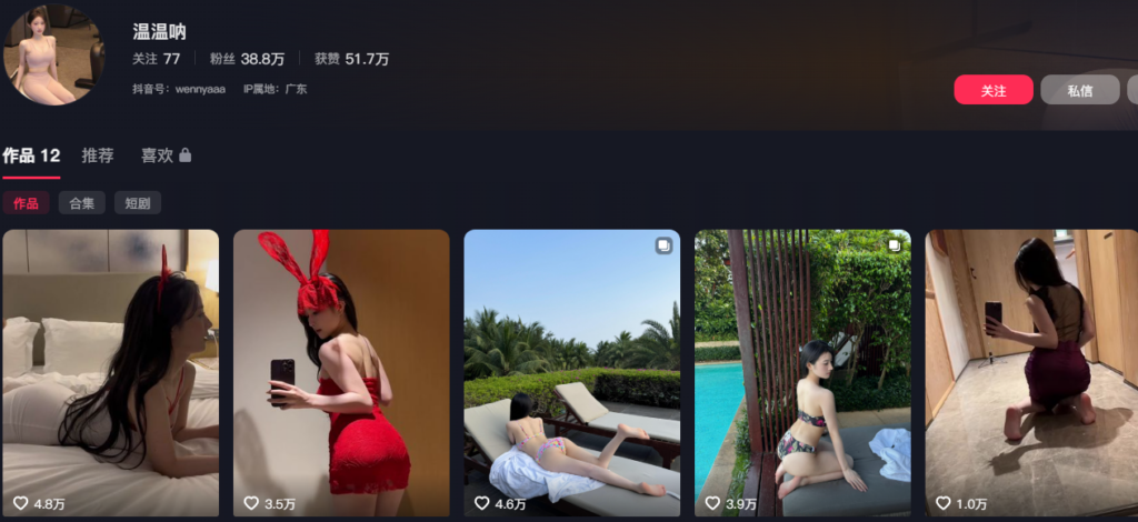 该文章由91吃瓜发布,转载请注明来源并附上原文链接: 39万粉丝抖音网红温温呐擦边御姐被曝私拍不雅视频