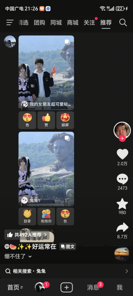抖音再次上演修罗场名场面,男主朋友圈发布的情侣二人合照,没想到竟然被女友兔兔9p成单人照,美美的恋爱竟然成了隐形人,更是被扒出女友竟然还有一个火花638天的男闺蜜。