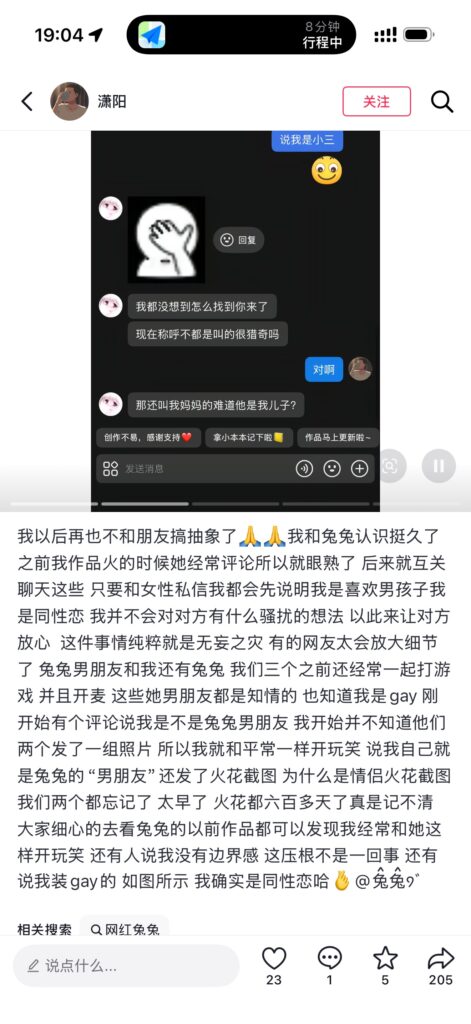 该文章由91吃瓜发布,转载请注明来源并附上原文链接: 抖音兰陵王3万粉丝嫩妹兔兔9劈腿小三男被挖出自称是gay